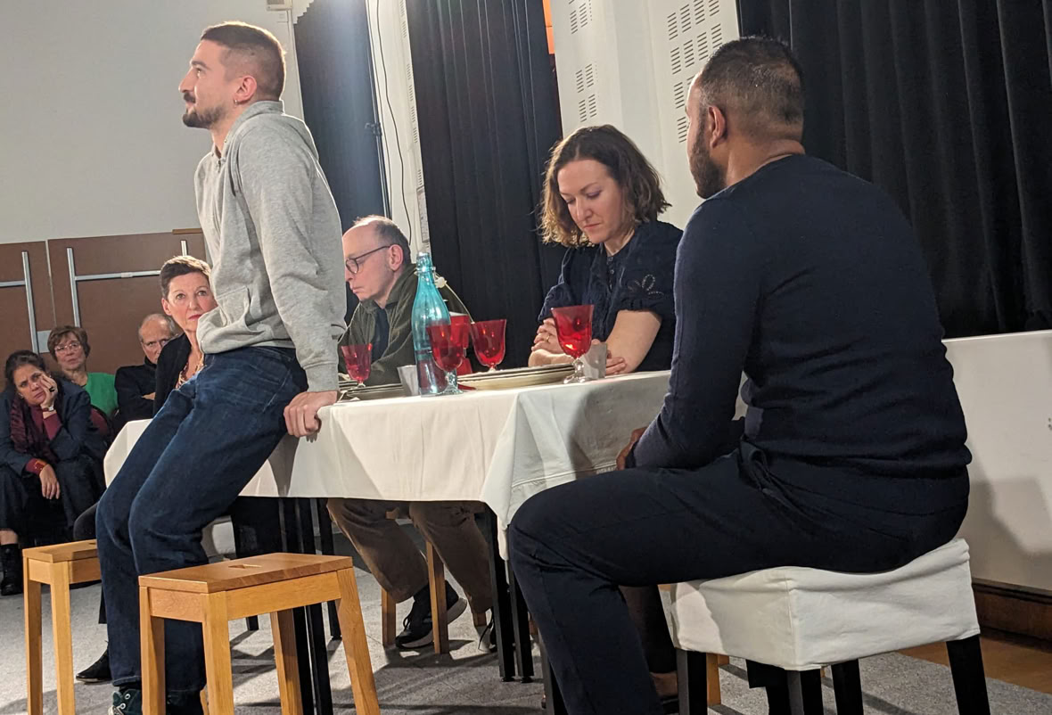 Dispositif de jeu: bi-frontal, durée du spectacle: 1H20, texte partiel