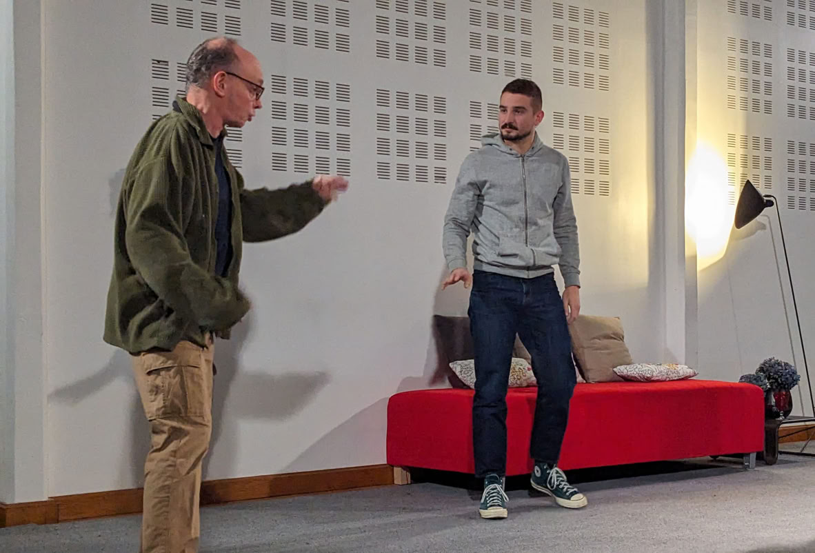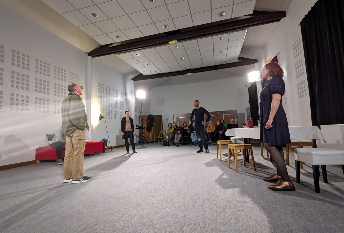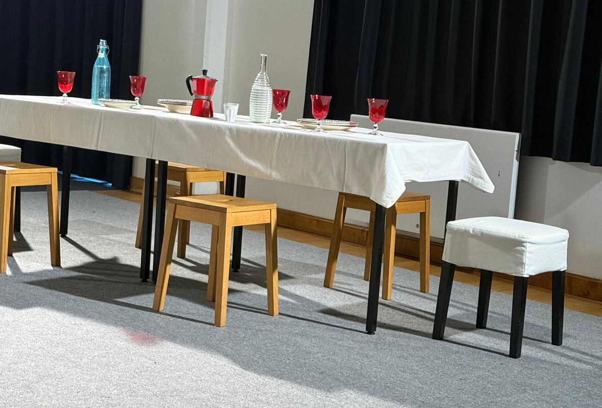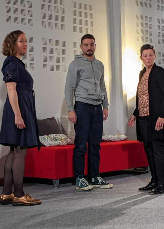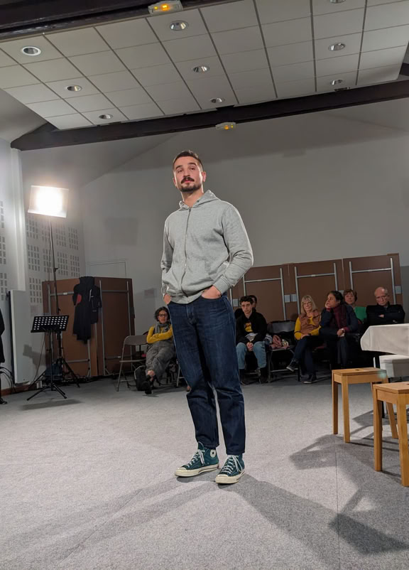 Dispositif de jeu: bi-frontal, durée du spectacle: 1H20, texte partiel