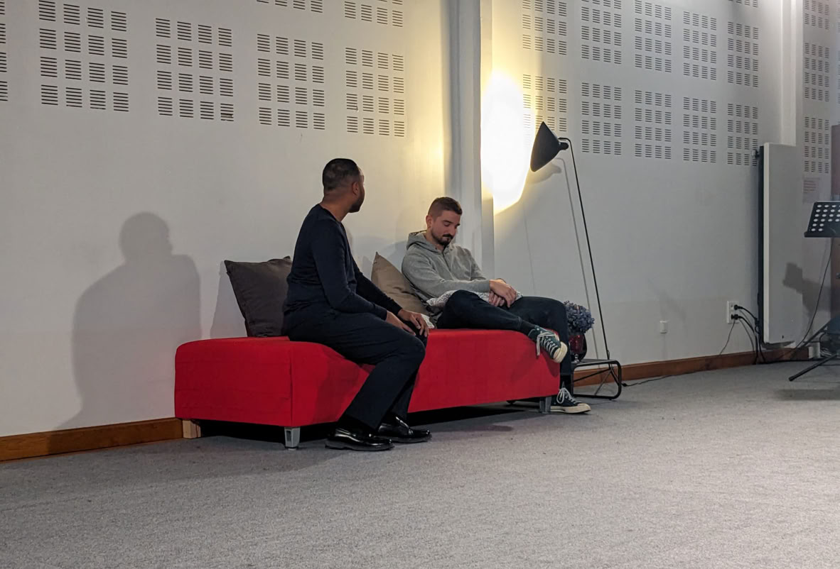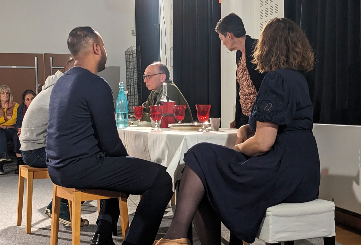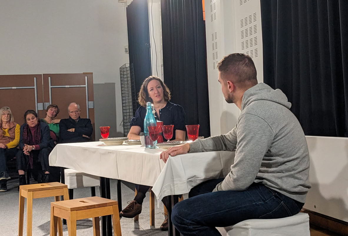 Dispositif de jeu: bi-frontal, durée du spectacle: 1H20, texte partiel