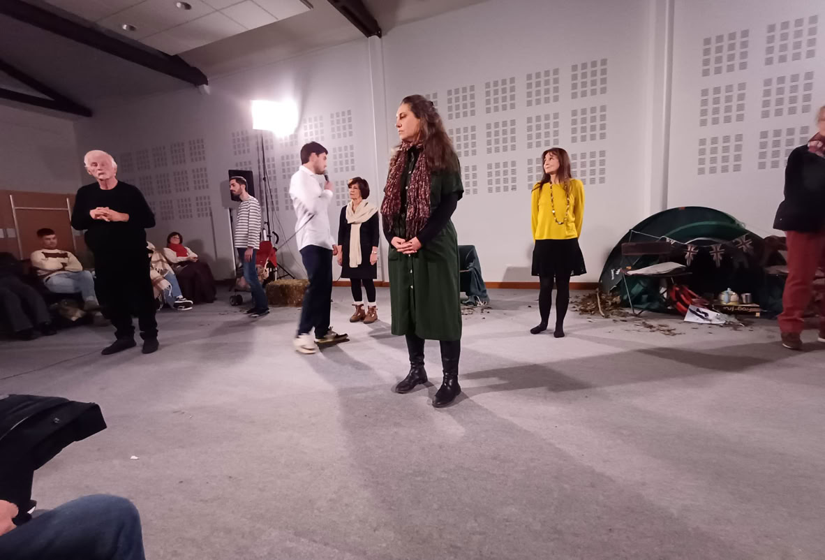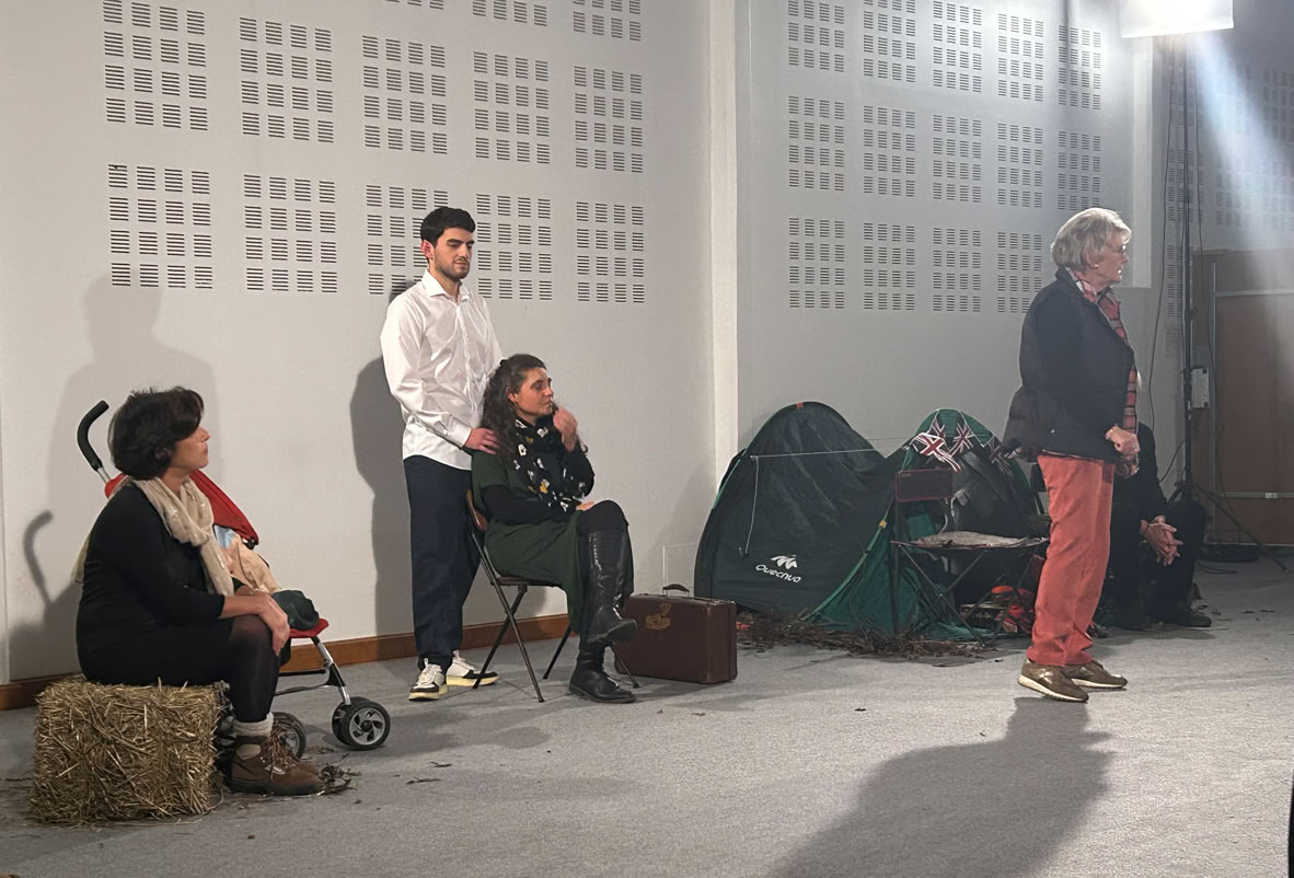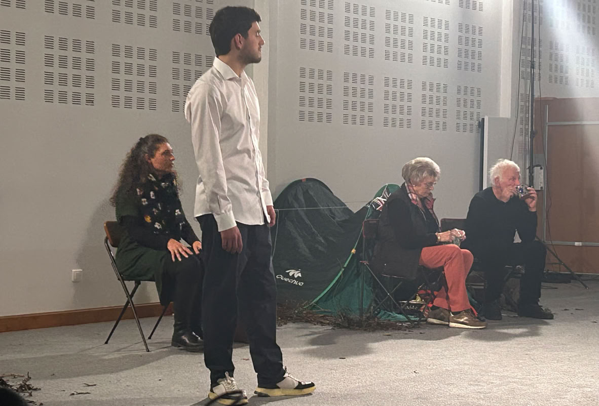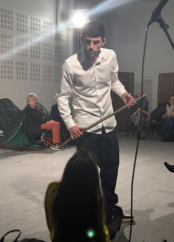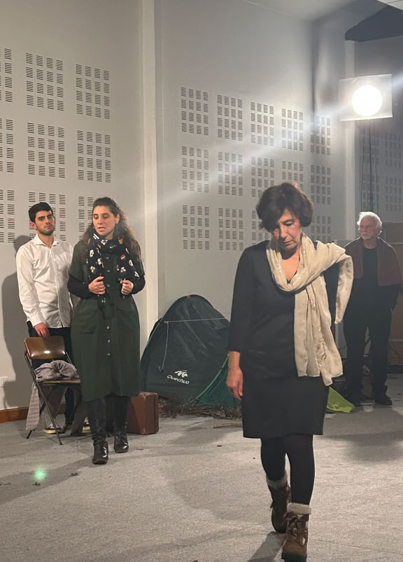 Dispositif de jeu: tri-frontal, durée du spectacle: 1H20, texte partiel